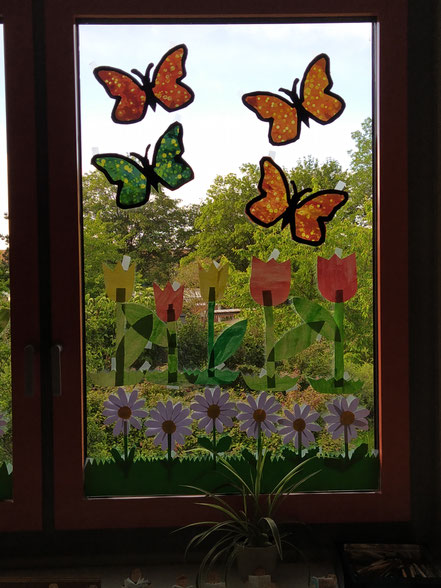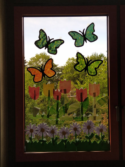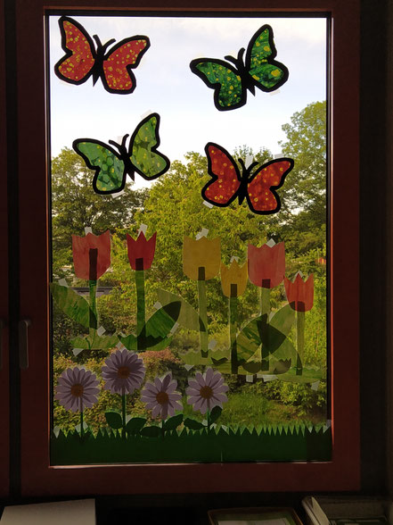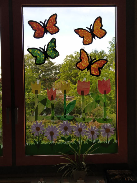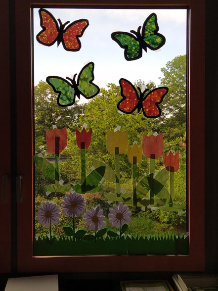 Unsere Schülerinnen und Schüler haben mit viel Begeisterung und Kreativität bezaubernde Fensterbilder gestaltet. Zu sehen sind farbenfrohe